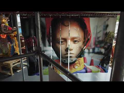 策展人-安格斯江 透過時裝設計的角度觀察工地文化,展現出工地圍籬內外的工地美學。以「看板廣告」、「舉牌人」、「倡議布條」、「圍籬塗鴉」等方式呈現,將工地圍籬內外不同族群的聲音連結在一起。